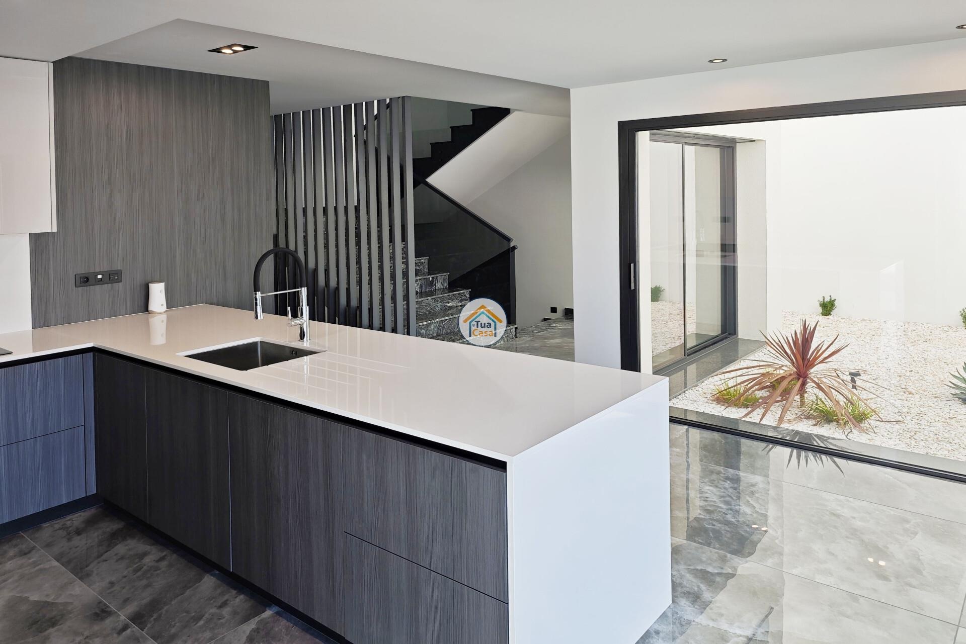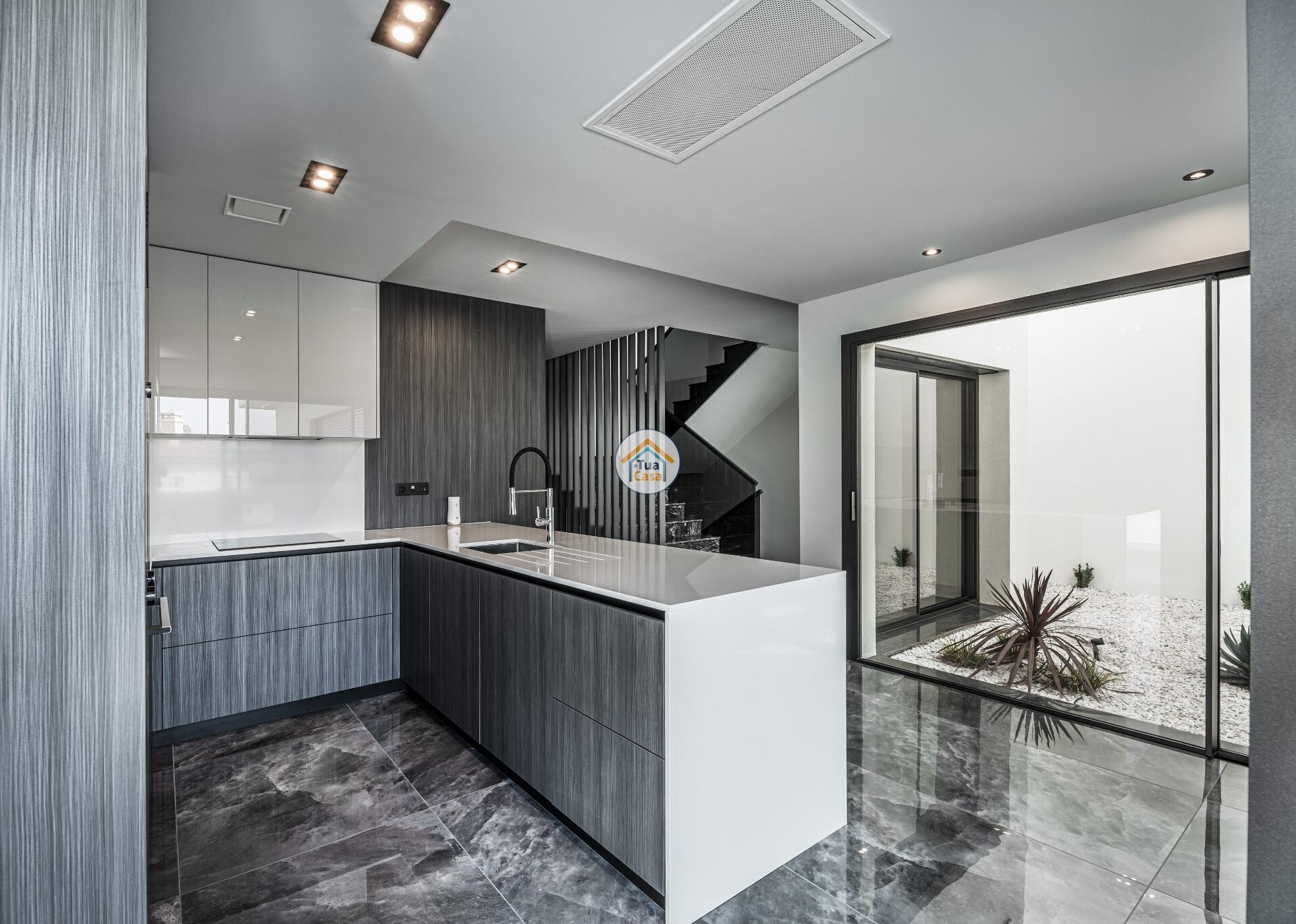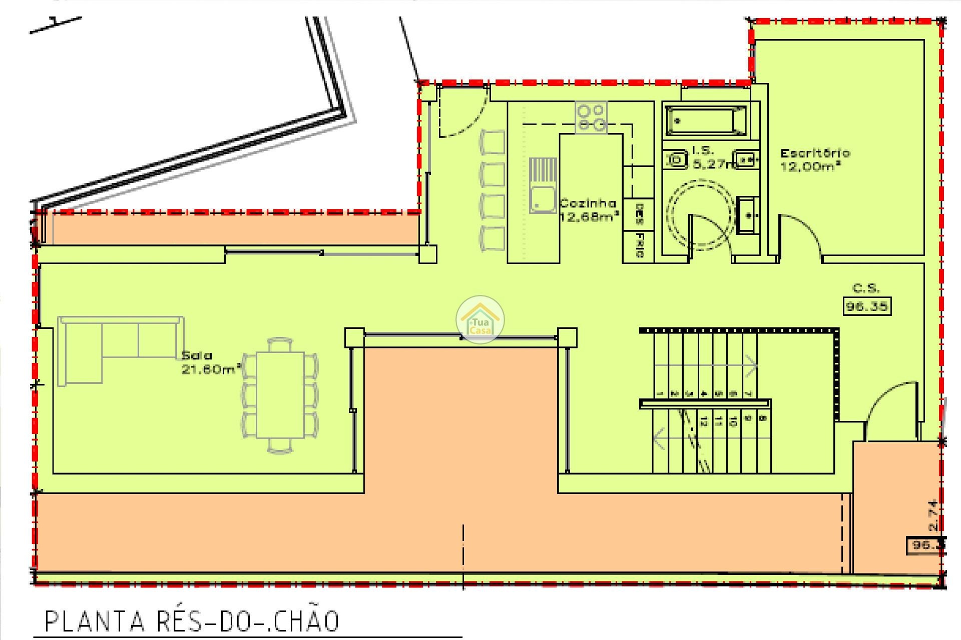 Ao nível do Rés-do-Chão encontramos um quarto/escritório, uma cozinha do mais alto nível de qualidade, espaçosa e moderna, a zona de jantar/estar com as suas janelas de grandes dimensões permitem uma enorme luminosidade exterior e ao mesmo tempo faz a ligação ao exterior com uma vista para o jardim.