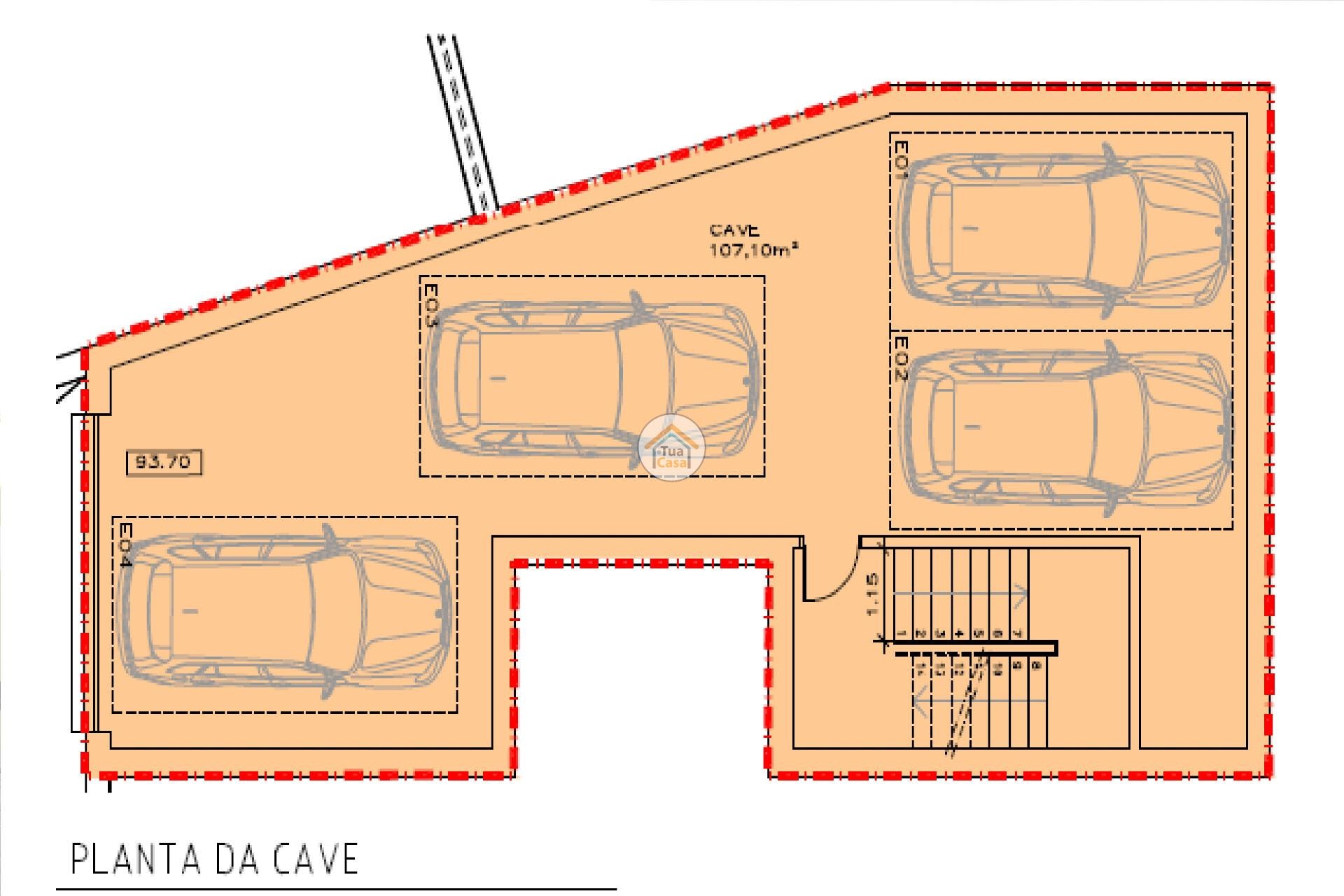 Na cave, encontramos uma garagem com capacidade para quatro carros, uma lavandaria com área generosa e a forma como foi idealizada permite que seja adaptada às diversas necessidades de cada pessoa.